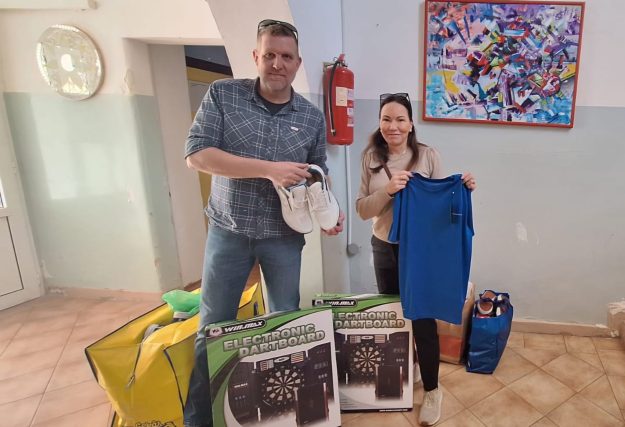Janette i Christer Flor, bračni par iz Kraljevine Ṣ̌vedske još jednom su pokazali kako dobrota i veliko srce ne poznaju granice. Svake blagdane nas se sjete. Danas su došli iz Ṣ̌vedske i uručili poklone za naṣ̌e štićenike. Sportske dresove i tenisice, za dečke i cure. A tu su i električna pikada za naṣ̌e dečke, sigurno…